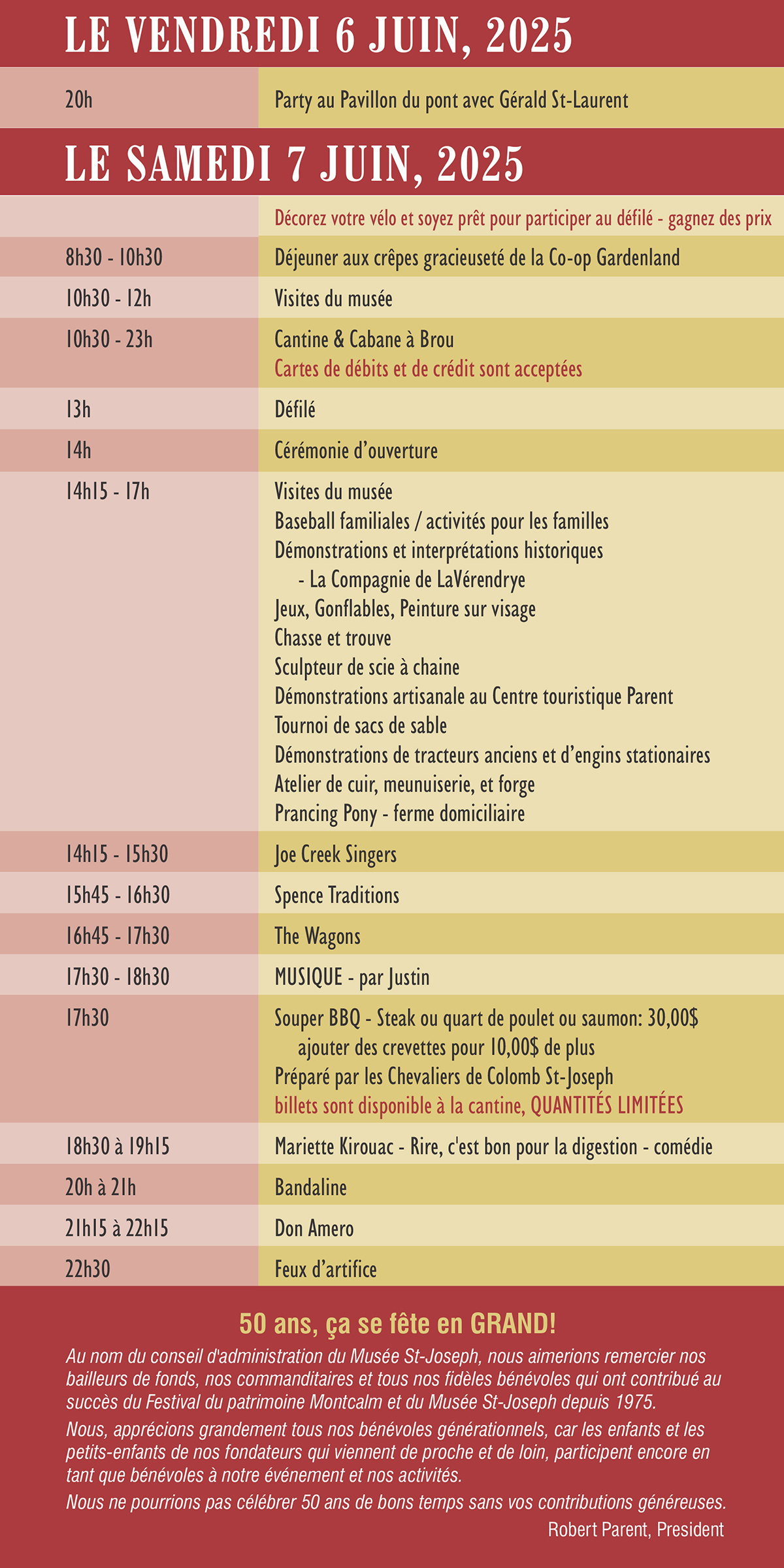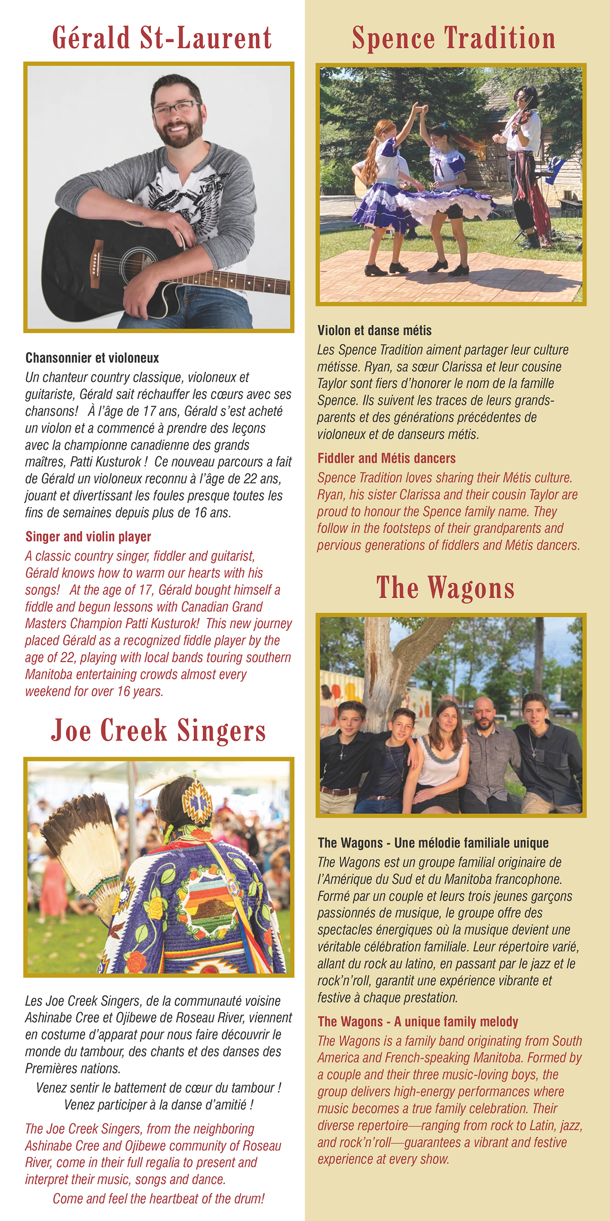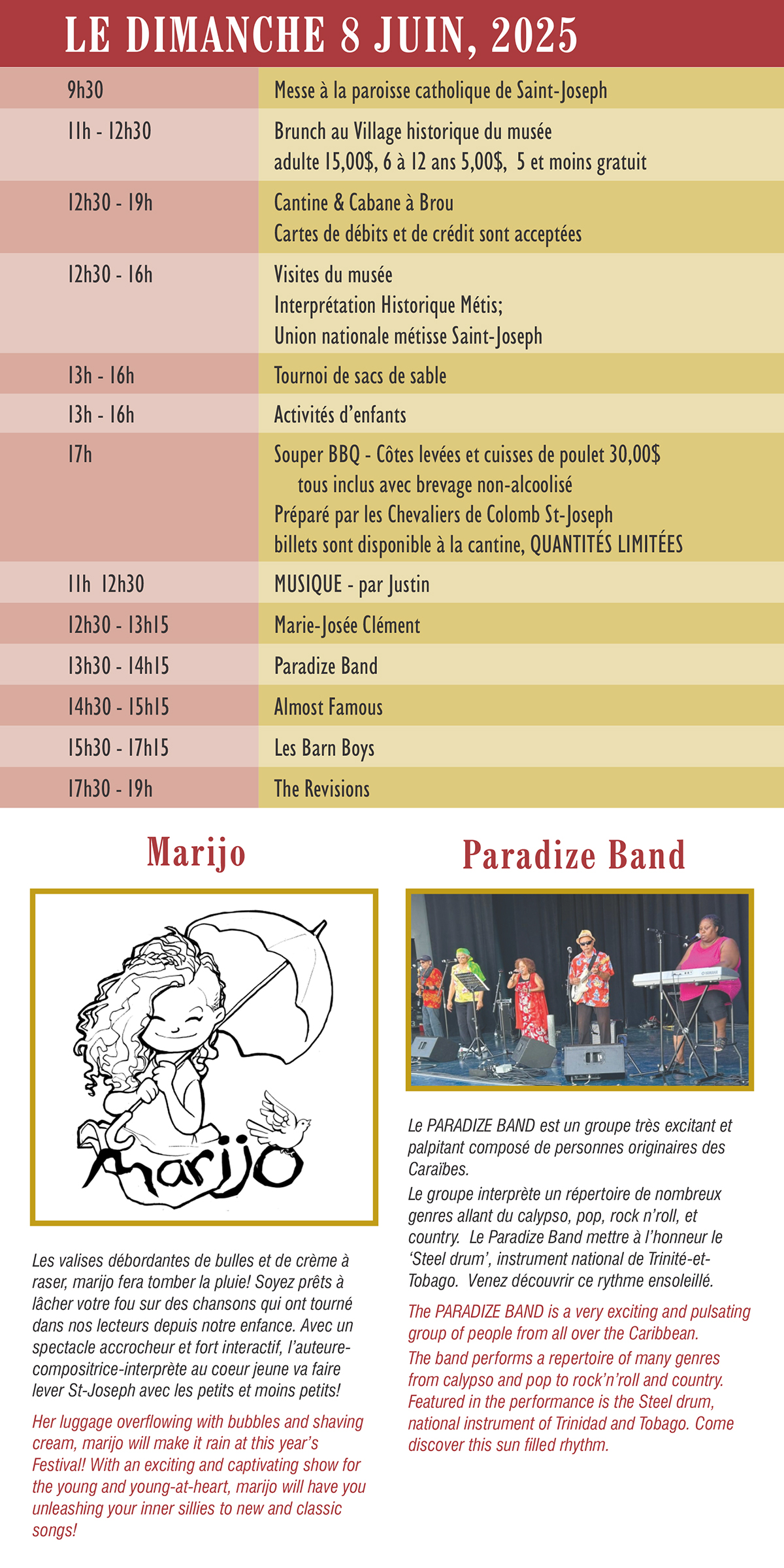 Le Musée Saint-Joseph et la grande équipe de bénévoles sont fières de vous inviter à venir célébrer notre culture et notre Joie de vivre au Festival du patrimoine Montcalm. Venez jouir d’une grande variété d’activités, de spectacles et d’interprètes historique. Visitez les édifices, d’exposition d’agriculture, d’engins à vapeur et l’agriculture des betteraves à sucre du Manitoba.